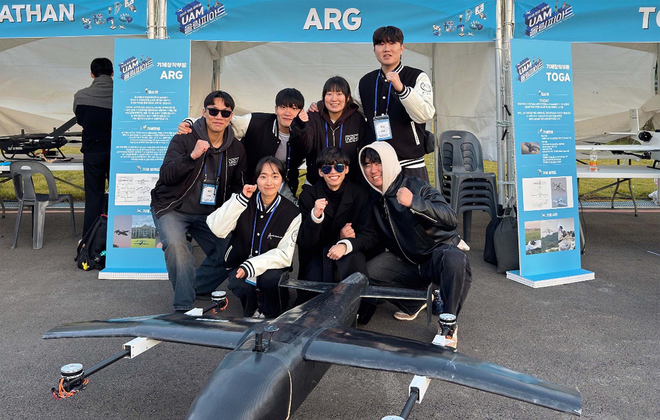ARG팀(이성혁, 심현호, 이훈, 윤정원, 오석진, 선건우, 신유림)은 항공기 설계부터 제작까지 전 과정을 직접 수행하며 실무 중심의 연구를 이어가는 학생 주도형 팀이다. 이들은 지난 4월부터 약 6개월간 Full-Scale 설계를 기반으로 축소형(scale) 기체를 제작하고 비행 테스트를 수행했다. 전국 28개 팀이 참가한 예선(7월)에서 상위 10팀이 본선에 진출했으며, ARG팀은 9월 사전비행평가와 10월 본선 제작·비행평가를 거쳐 최종 1위에 올랐다.