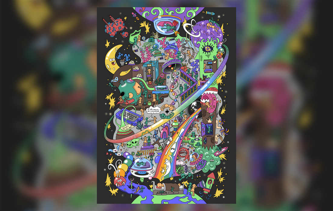 올해 공모 주제는 ‘꿈’으로, 참가자들은 주제에 대한 각자의 해석을 담은 오리지널 일러스트를 제작해 픽시브에 출품했다. 김수빈 학생의 수상작 「Dream Frequency: 꿈속의 주파수」는 꿈속에서 들려오는 미지의 신호를 모티프로, 인간과 외계 존재가 비언어적 방식으로 교류하는 장면을 시각적으로 구현한 작품이다. 우주 공간을 배경으로 한 구조적인 화면 구성과 강렬한 색채 대비, 상징적인 요소 배치를 통해 작품의 세계관을 효과적으로 드러냈다.