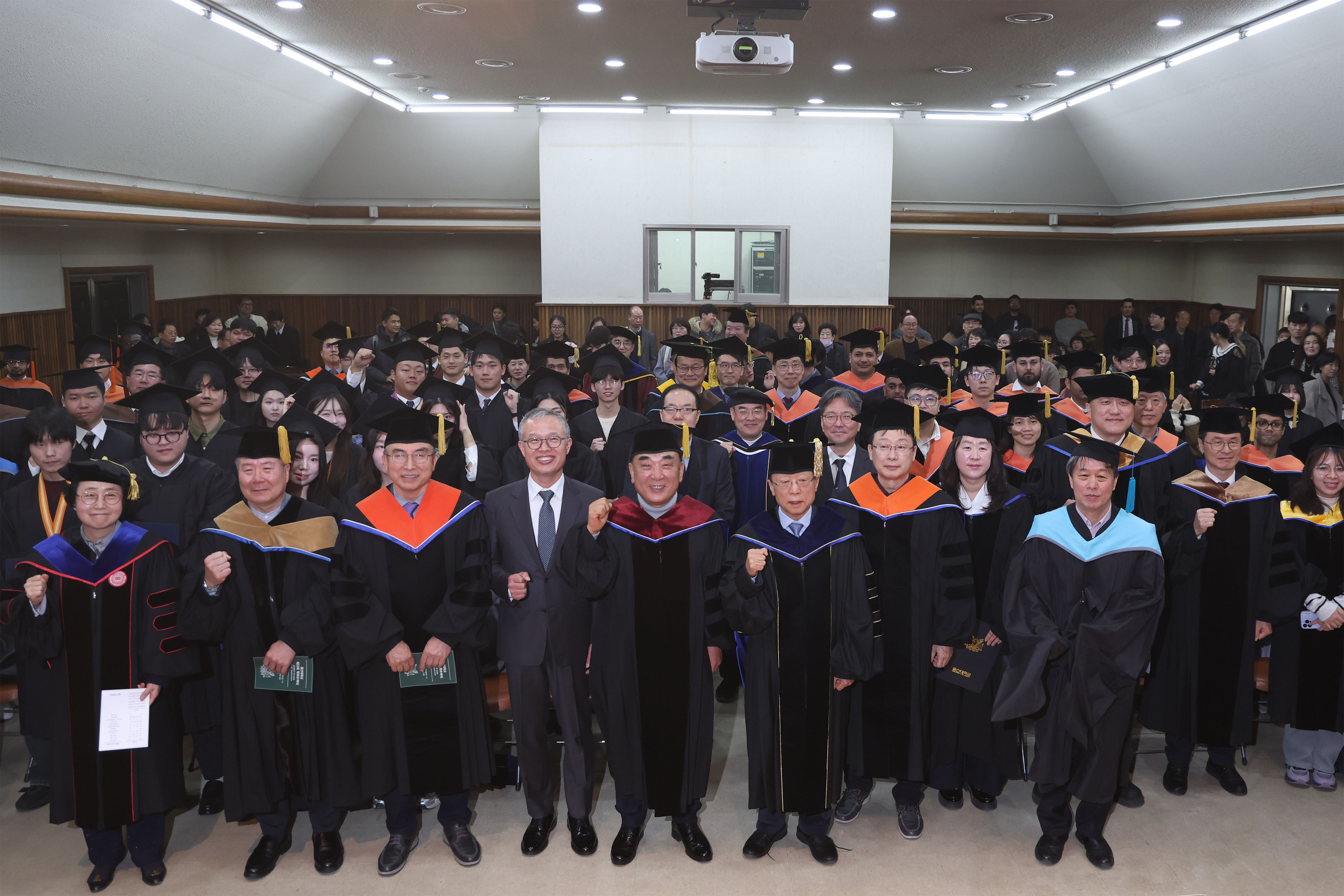 학위수여식이 끝난 후 오연천 총장을 비롯한 주요 내빈들이 단체 촬영을 하는 모습