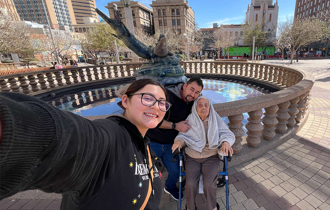미국 텍사스 엘파소 산 하신토 광장에서 아버지, 할머니와 함께한 가족사진