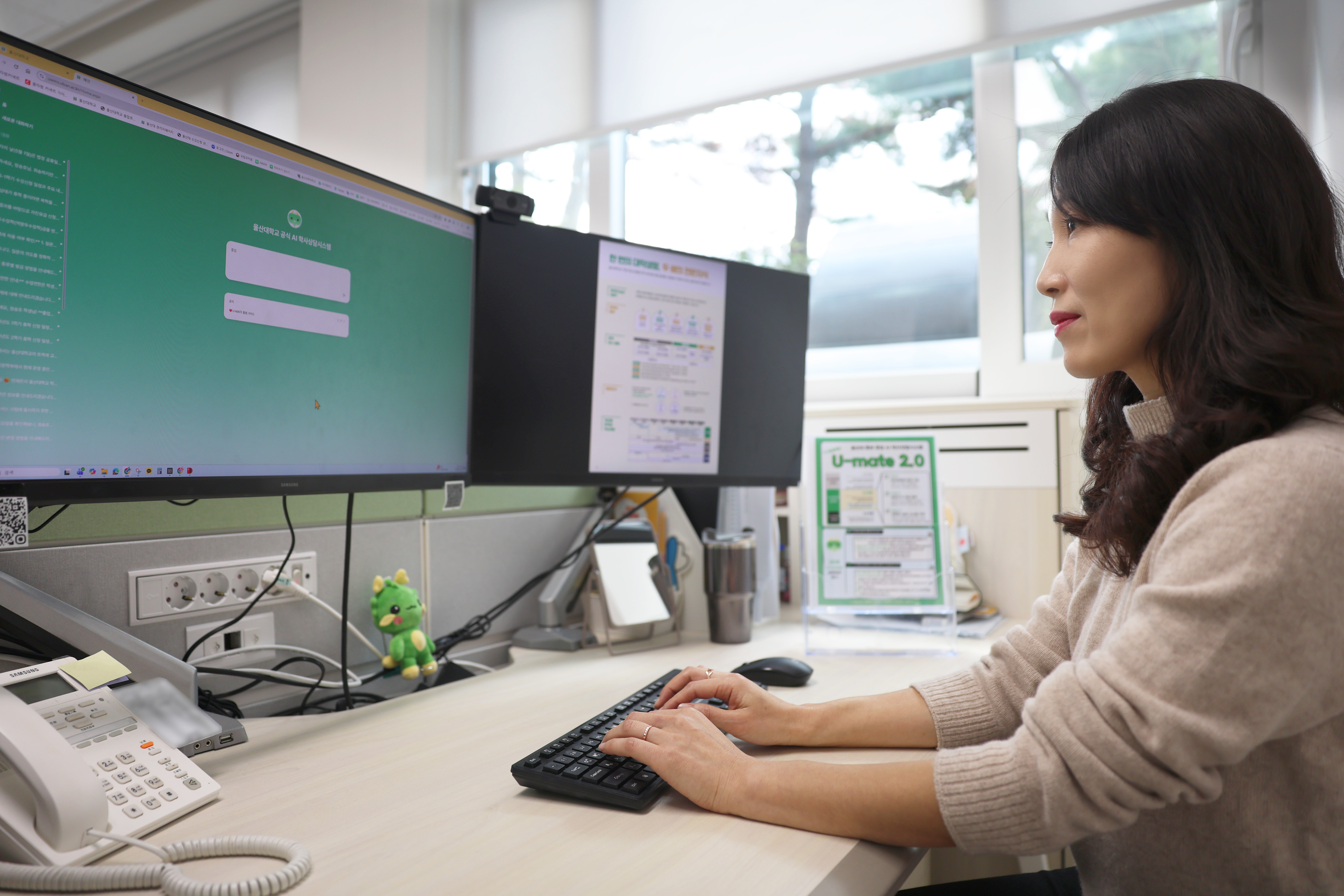 AI학사상담시스템을 통해 학생들의 질문을 점검하고 있는 홍명화 학사코디네이터